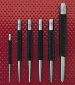 - Center punch with 4" length and 1/8" diameter tapered point makes a starter dimple to guide a drill bit
